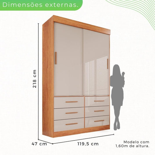 Guarda Roupa Solteiro 2 Portas 6 Gavetas Luana Sallêto Móveis