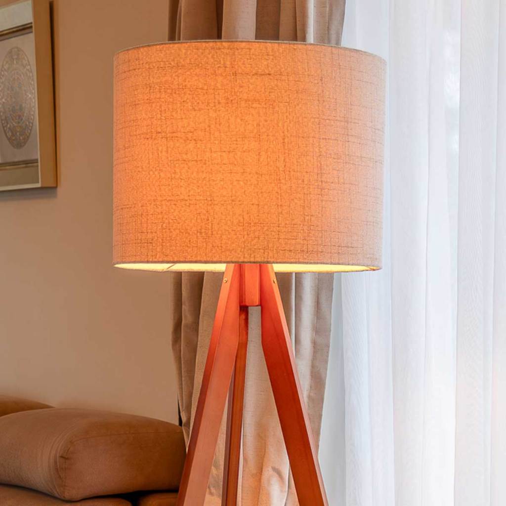 Abajur De Chão Tripé 1,50 Cm Completo Com Cúpula Tecido Linho E Fiação Luminária De Piso Para Sala