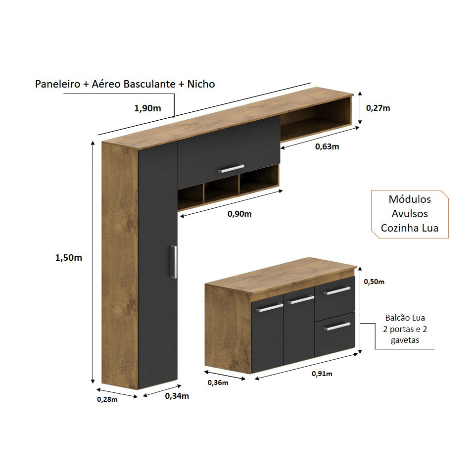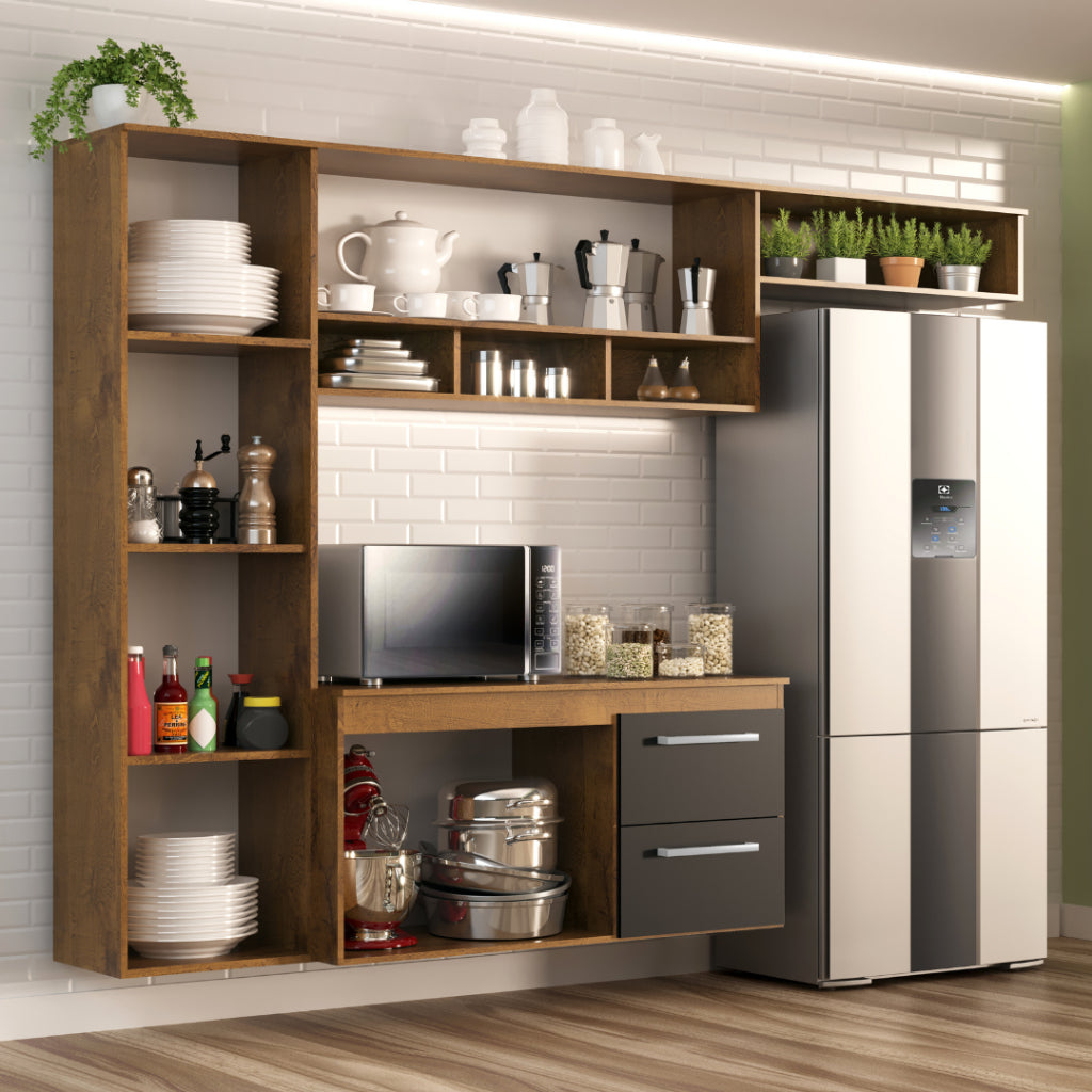 A Cozinha Lua foi desenvolvida para proporcionar mais beleza e funcionalidade ao seu ambiente. Com um design moderno e bem planejado, oferece o espaço ideal para armazenar seus utensílios e eletrodomésticos, garantindo um ambiente mais organizado e prático.