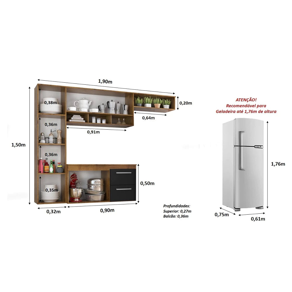 Armário Cozinha Compacta Lua 4 Portas 2 Gavetas