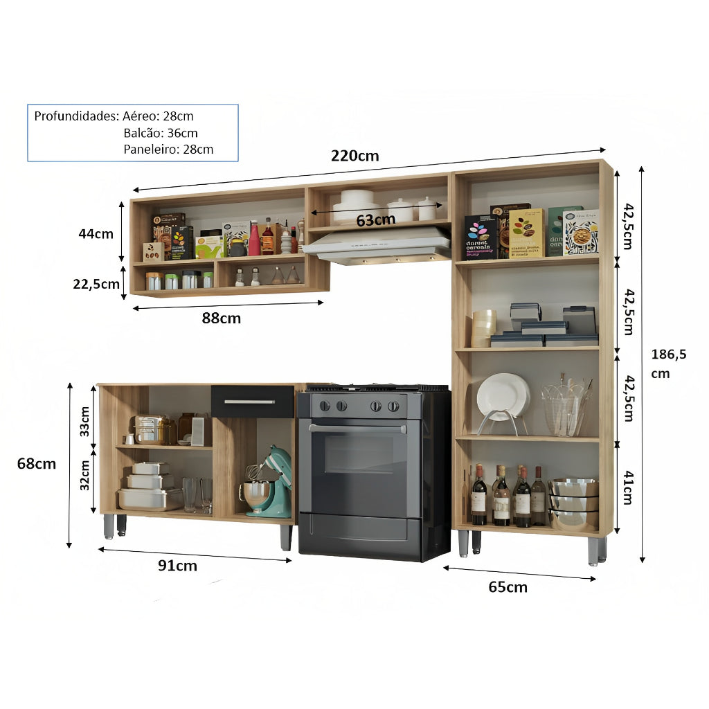 Armário Cozinha Estrela 9 Portas 1 Gaveta Com Balcão