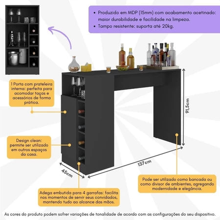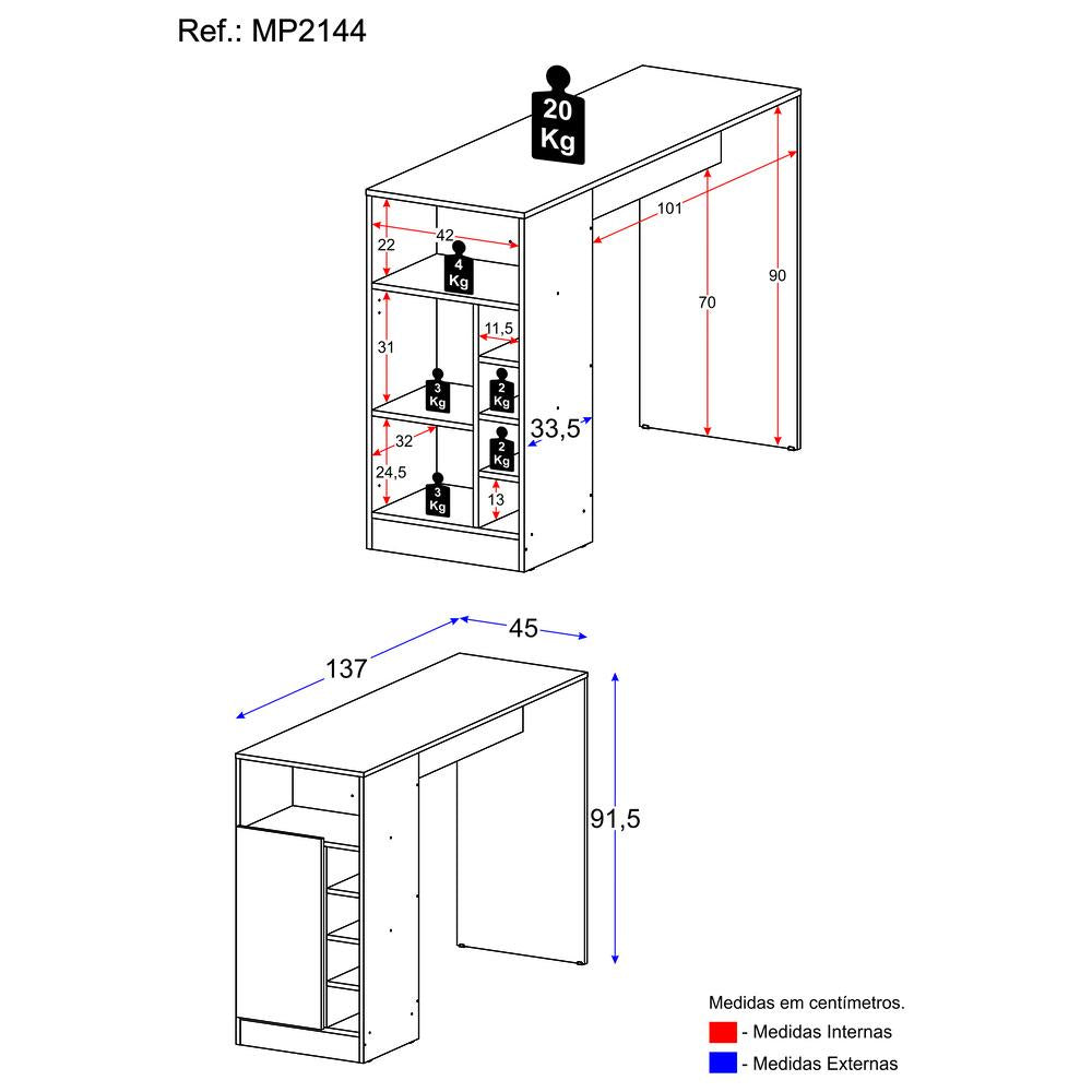 Bancada Balcão/Mesa de Cozinha com Adega e 1 Porta Multimóveis MP2144