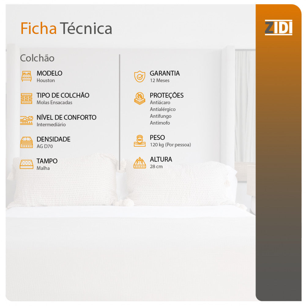 Colchão Casal Houston Molas Ensacadas Pillow In 138x188x28cm