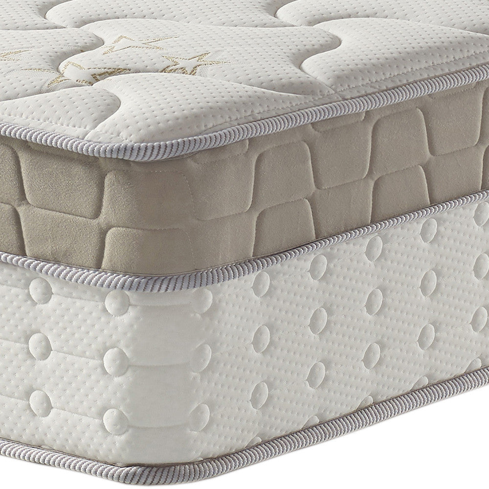 - Bordado Contínuo: Design sequencial que aumenta a maciez e o conforto, destacando a estética do colchão.