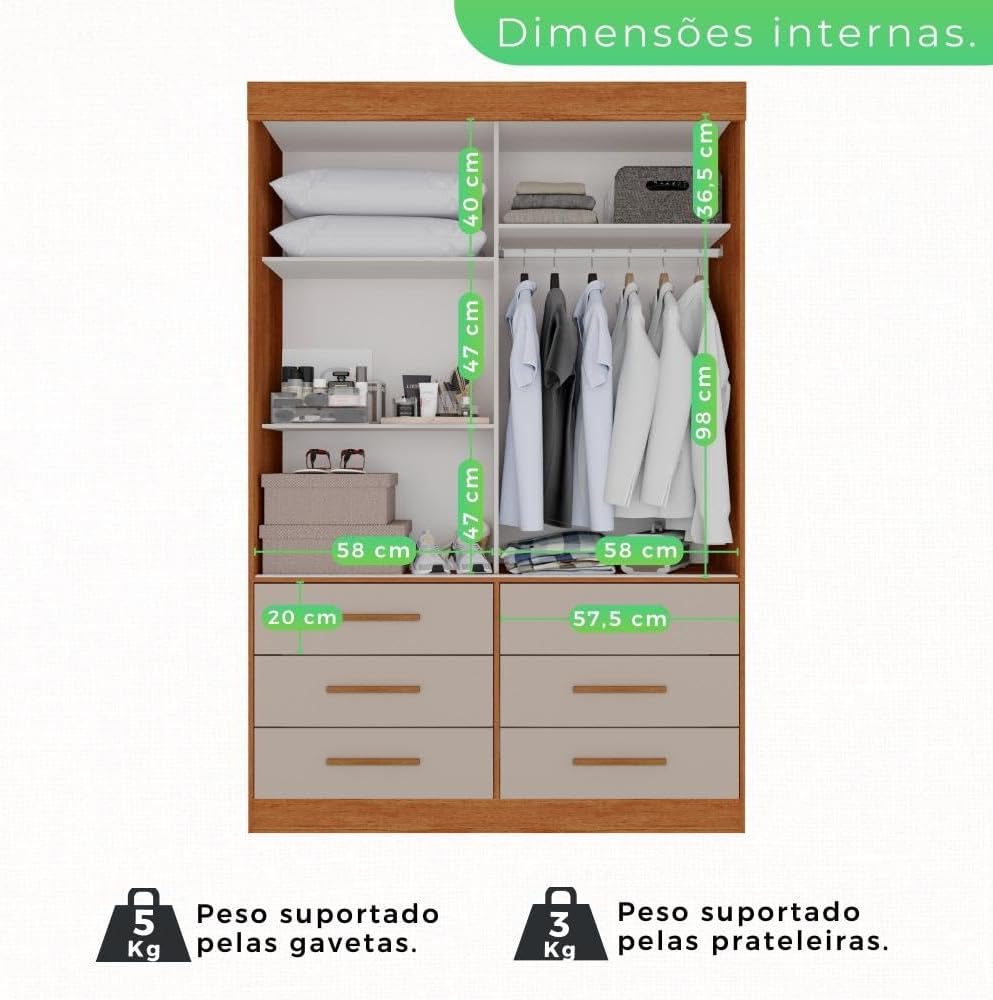Guarda Roupa Solteiro 2 Portas 6 Gavetas Luana Sallêto Móveis