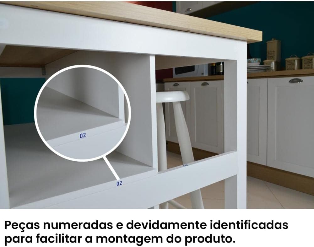 Ilha Cozinha Ditália 2 Prateleiras Preto Cd-1019