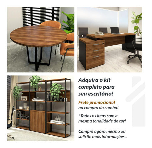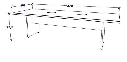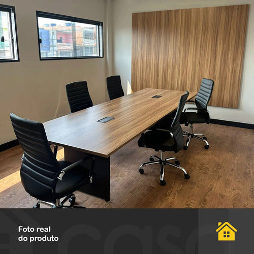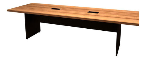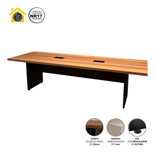 Mesa De Reunião 8 Pessoas 2,70m Nogal 2 Caixas De Tomadas F5