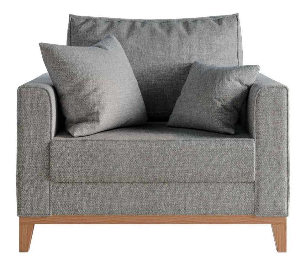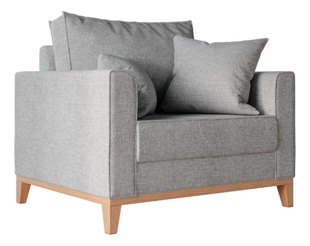 Poltrona Mobly Beny Pés E Base Em Madeira Linho Cotton Cinza